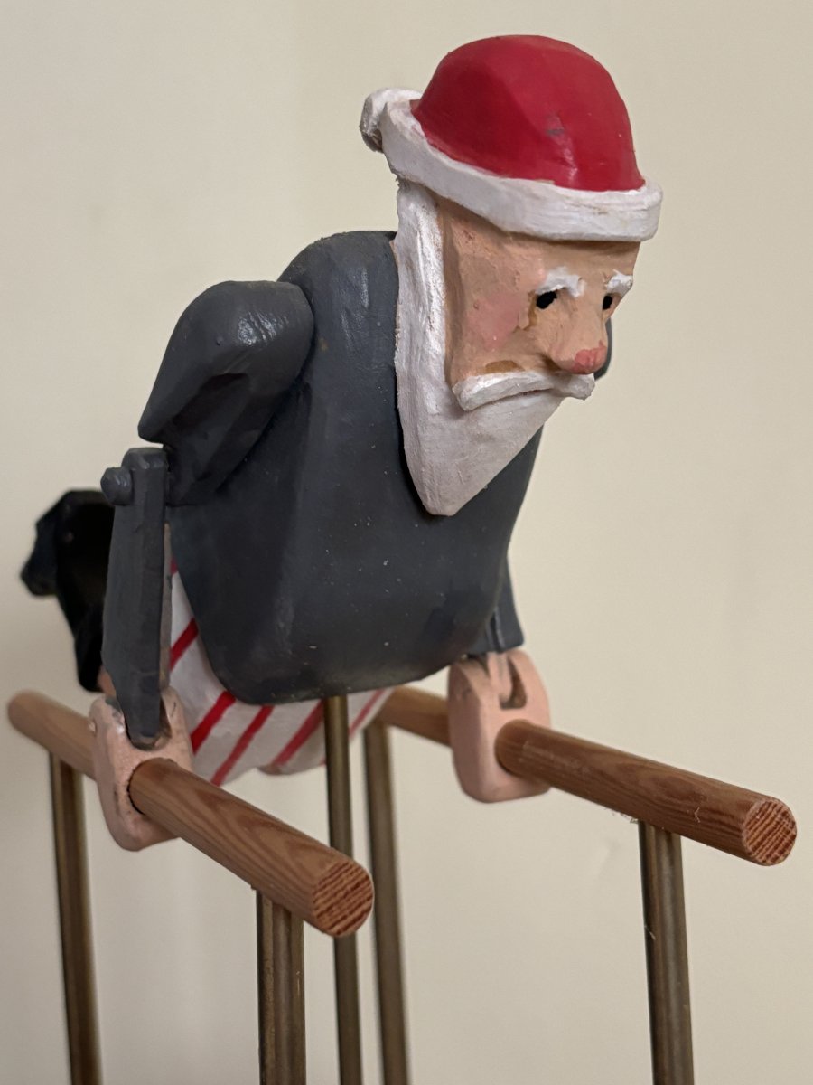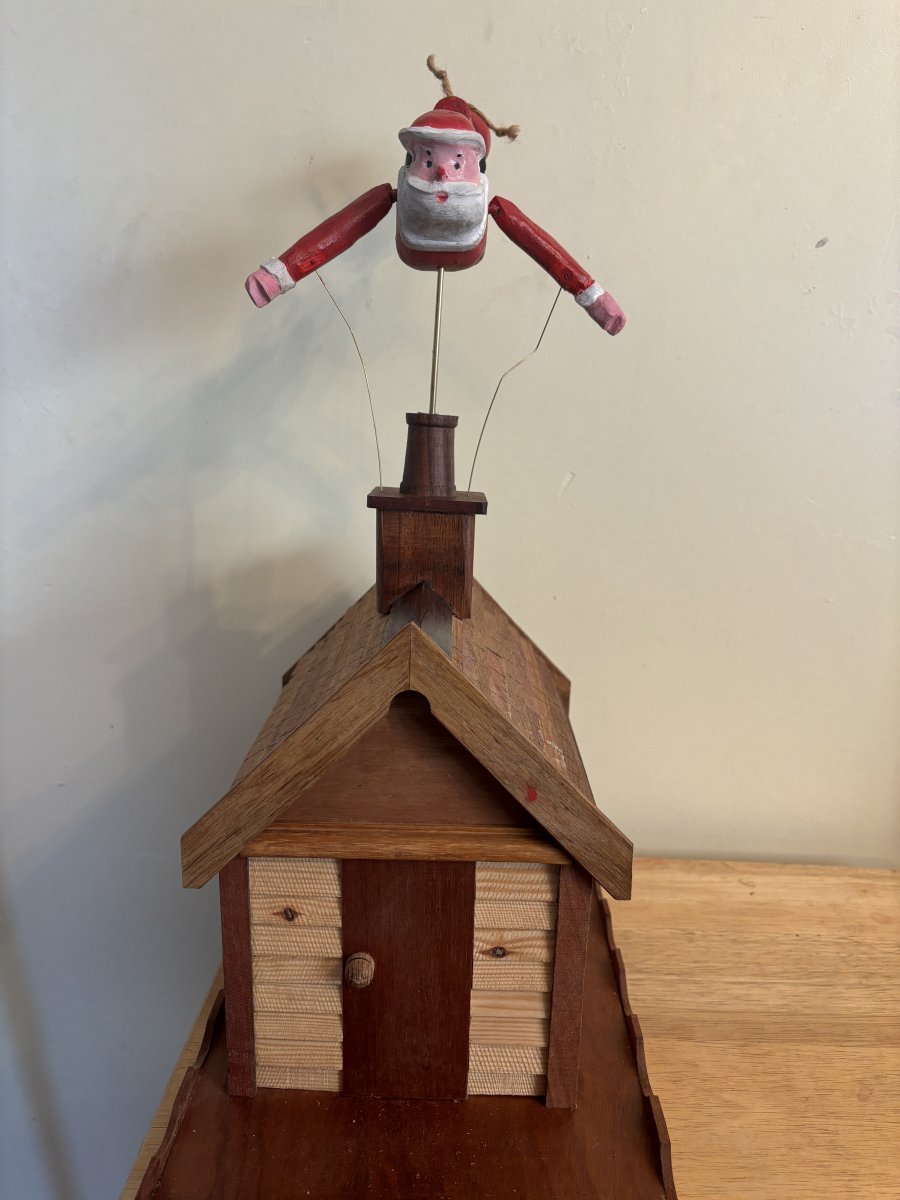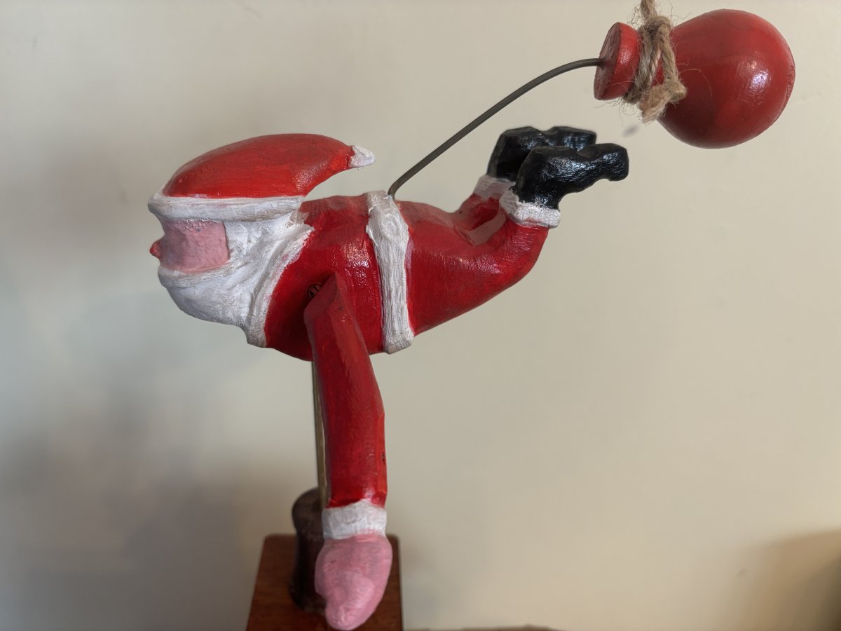 Overall view of the hand-carved Flying Santa, complete with his Sack.